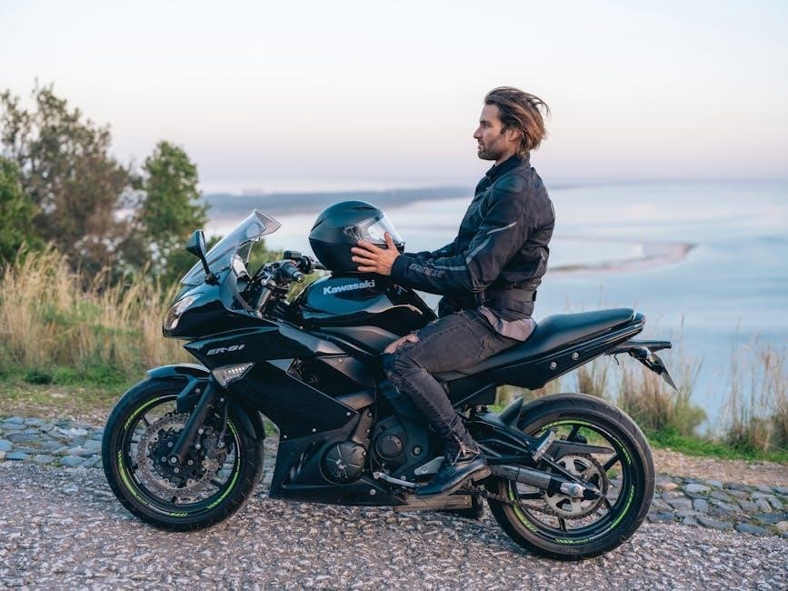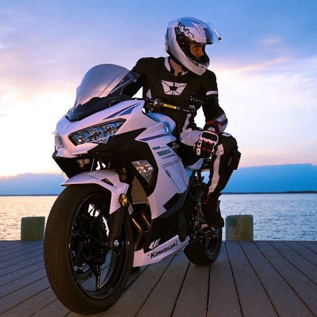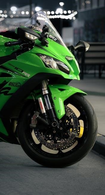 Manuals emphasize the importance of wearing appropriate safety gear‚ including helmets‚ eye protection‚ and gloves․ They detail procedures for safe lifting and securing the motorcycle during maintenance․ Warnings against modifications that could compromise safety are also included․ Kawasaki stresses the need to disconnect the battery before performing electrical work․ Ignoring these precautions can lead to serious injury or damage․ Always heed these warnings and prioritize safety when operating or maintaining your Kawasaki motorcycle․